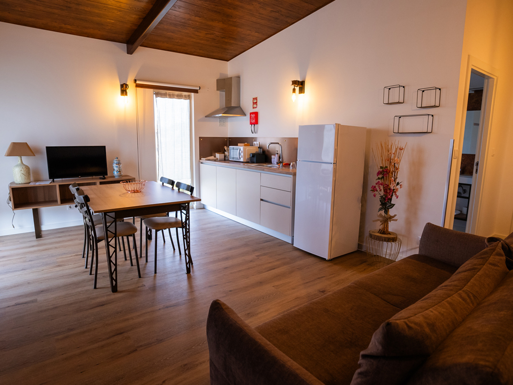 Conforto, versatilidade e natureza num só lugar Os nossos bungalows geminados — uma solução inteligente e acolhedora para grupos, famílias ou casais que procuram tranquilidade e flexibilidade. Cada unidade Challet é composta por: 1 T1 (ideal para 2 a 4 pessoas) 1 T2 (ideal para 4 a 6 pessoas) As duas unidades têm entradas independentes, mas estão ligadas por uma porta interior comum, permitindo transformar o espaço num único alojamento para até 10 pessoas — perfeito para grupos maiores que desejam estar juntos, sem abdicar da privacidade.